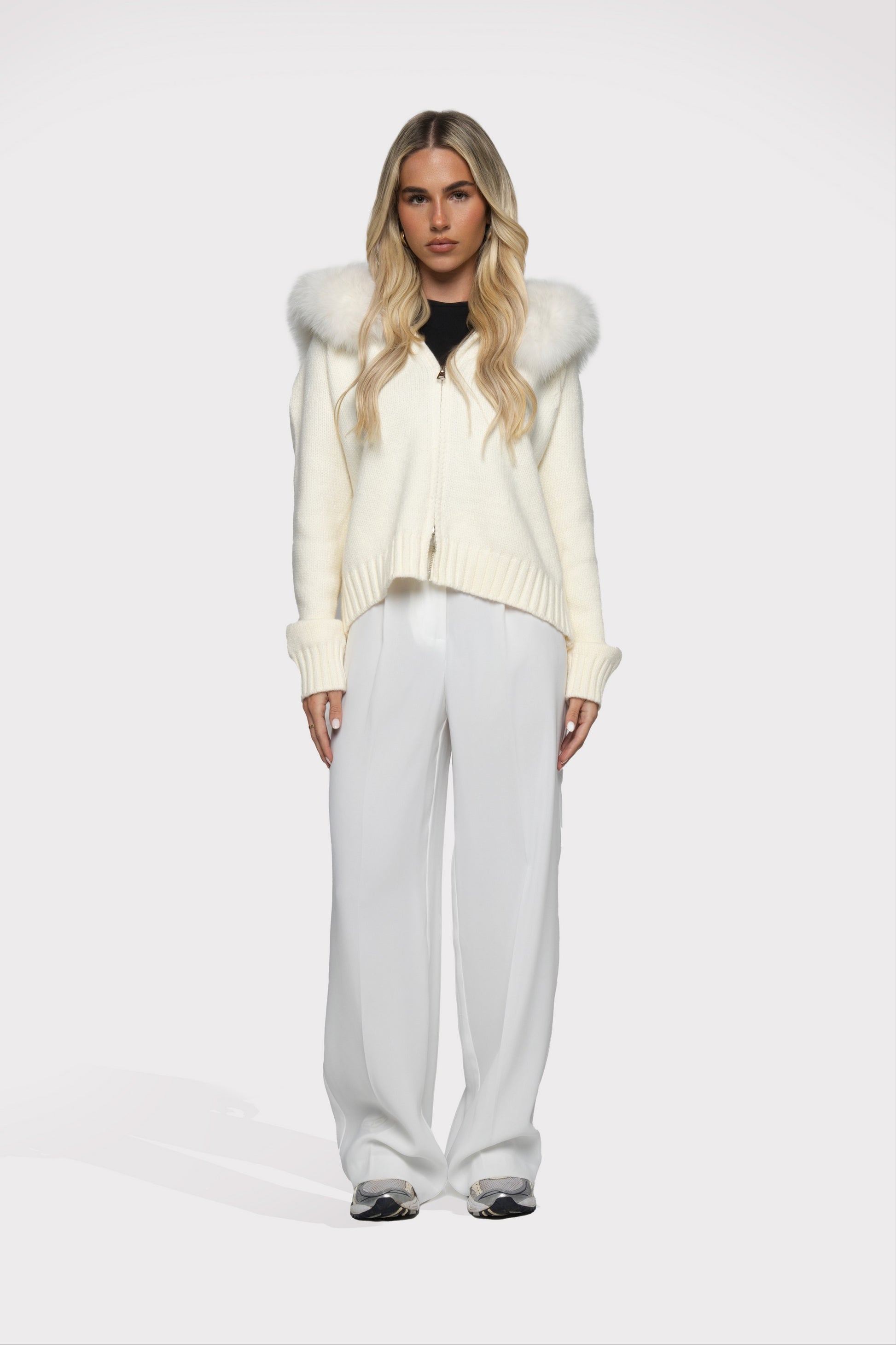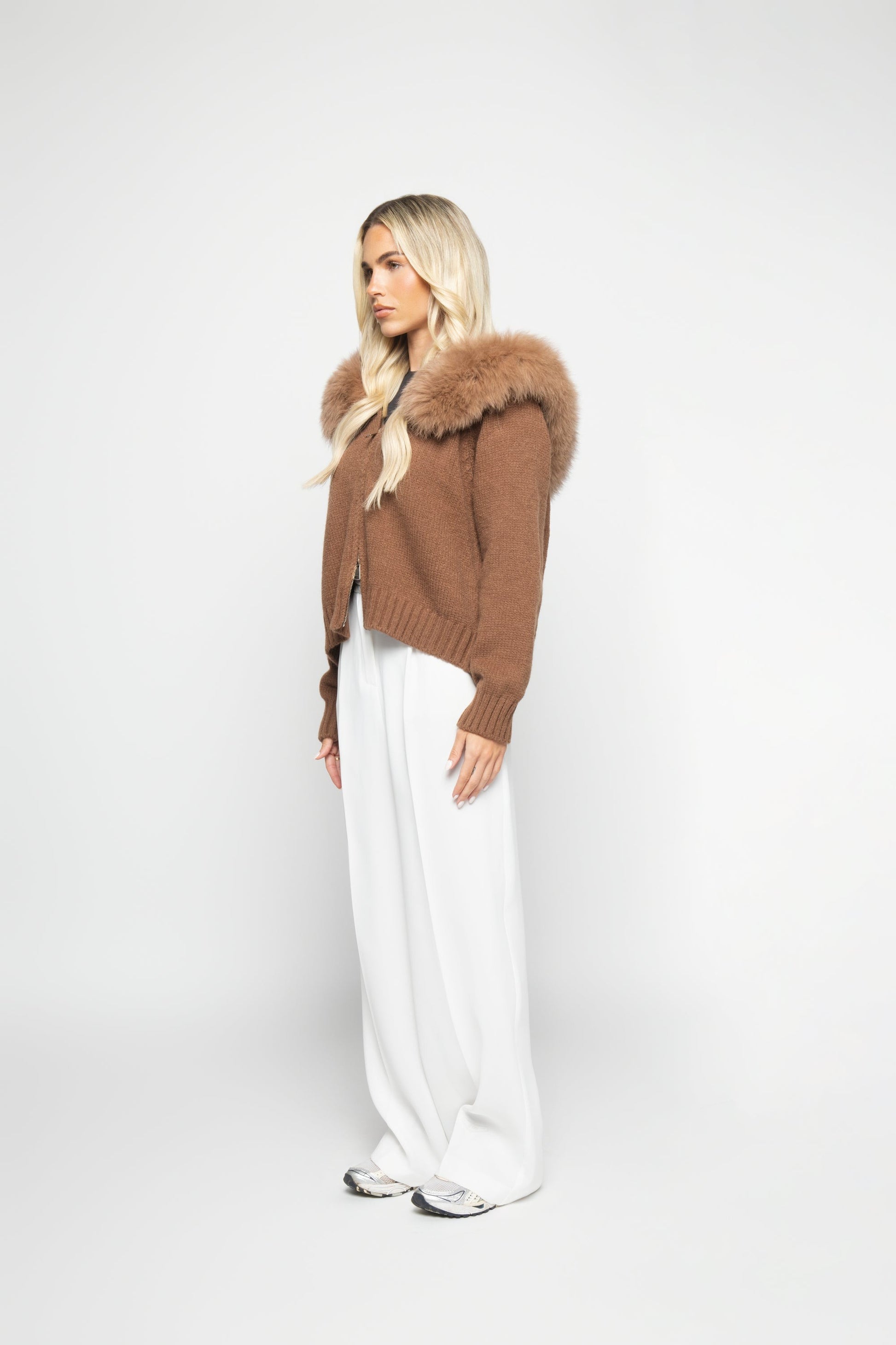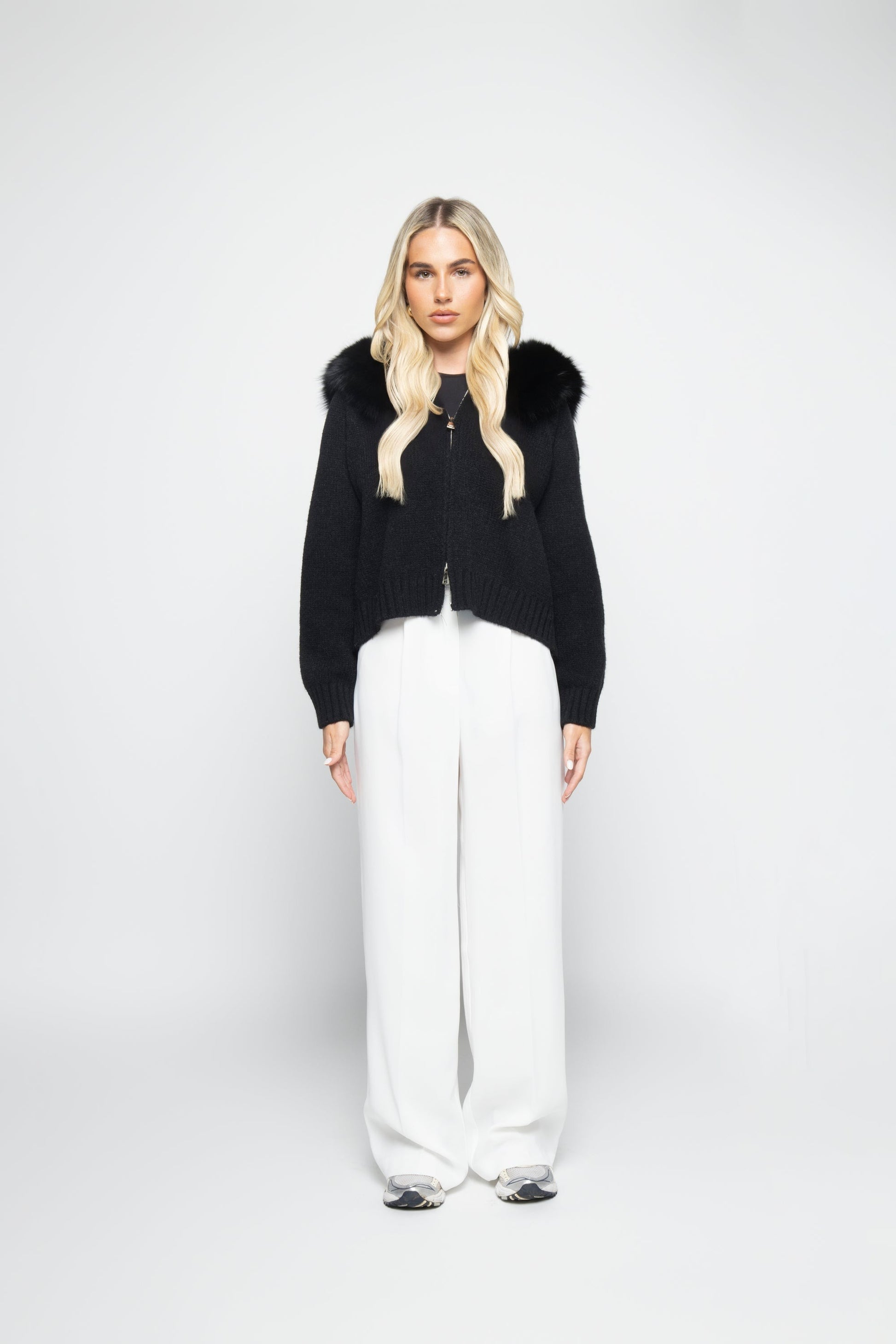 Affrontez l'hiver avec style grâce à cette magnifique veste en laine à capuche ornée de fourrure douce et raffinée.